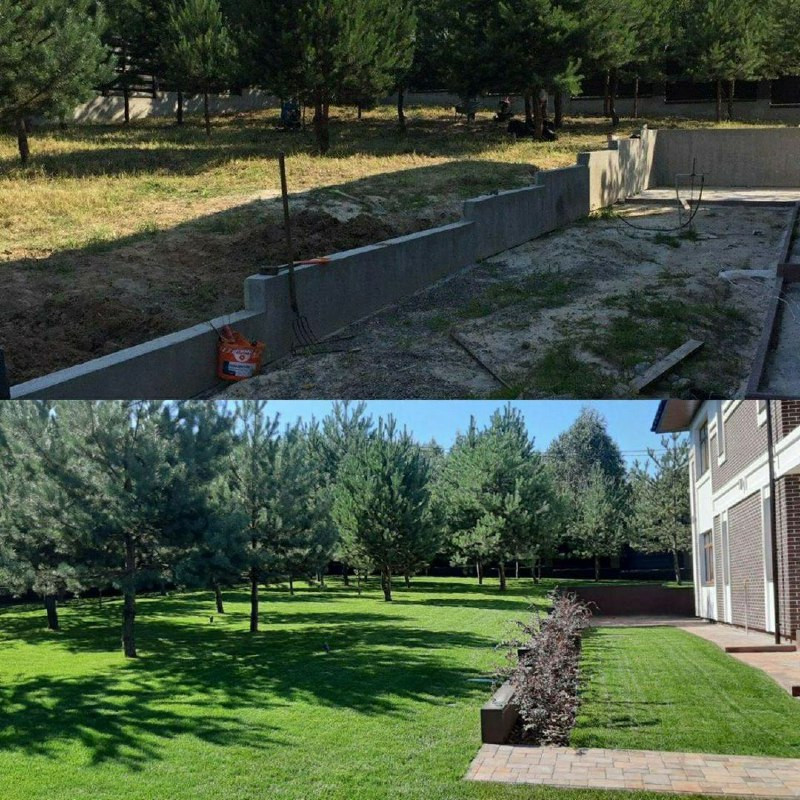 - Высокое качество газона. Обеспечим идеальный уход для участка. Начиная от снятия почвы до заранее подготовленного состава минеральных удобрений, необходимых для прорастания и роста травяной сумки.