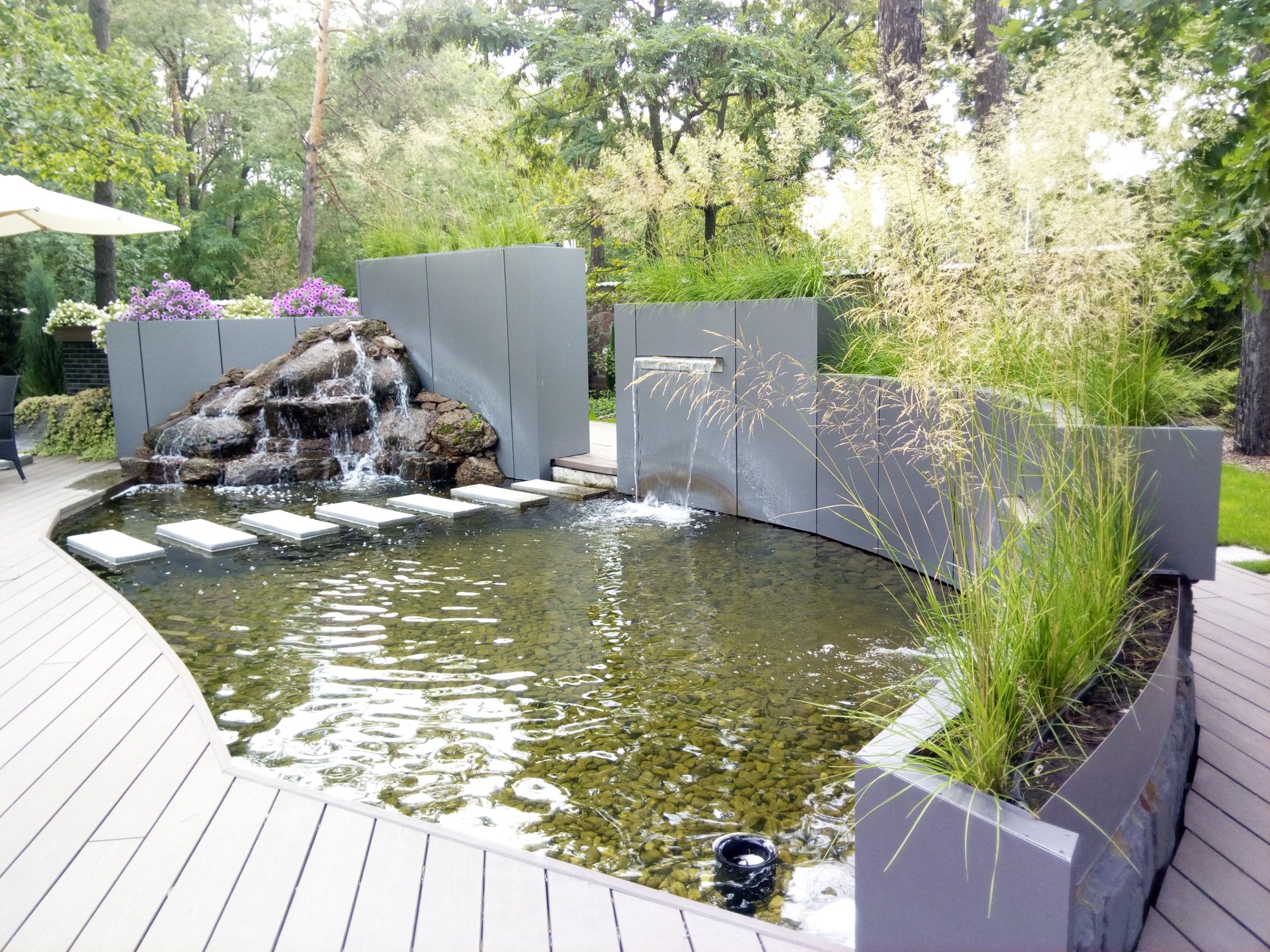МС Ландшафт занимается устройством водяных участков. Мы предоставляем полный комплекс мероприятий, касающихся этого направления деятельности. Проектирование, подбор необходимых материалов и конструкций, создание бассейнов и водовместилищ, оснащение водой и другими услугами для оформления идеального декора для дачи, загородного коттеджа или любой области вокруг водной поверхности. Наше агентство предоставляет сервисы обустройства по приемлемой стоимости, на которую влияет география локации, стройматериалы, тип строительных мероприятий и их объем.